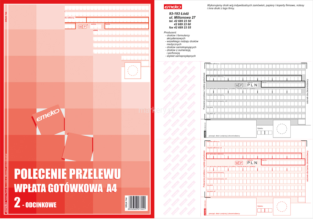 - Przeznaczenie: Druki ksiegowe, kasowe, bankowe