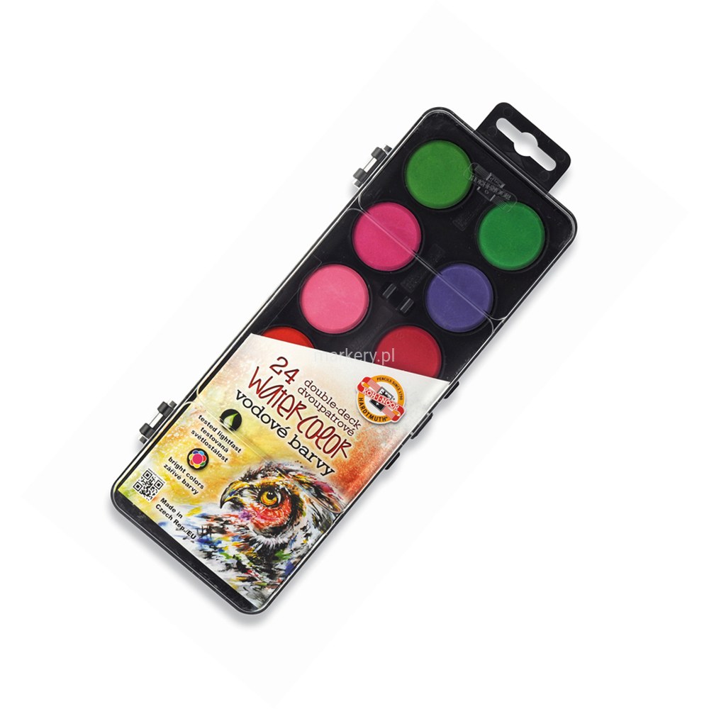 Farby akwarelowe 24 kol 30mm prostokątne op czarne