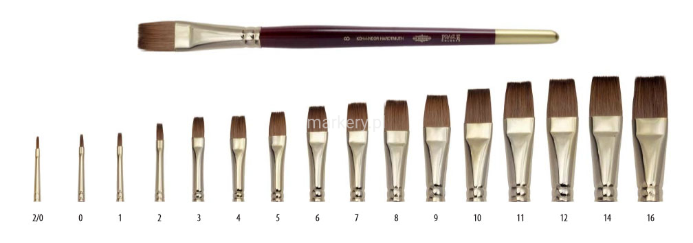 - płaski kształt pędzla w zależności od wielkości nadaje się do malowania detaliwypełnieńcienkich i grubych linii