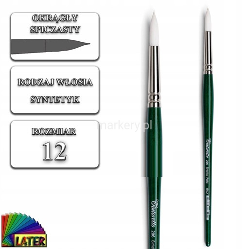 Pędzel syntetyczny okrągły serii 206pędzle wykonane z białego syntetyku zwanego perłąniklowane, mosiężne okucie, krótka rączkapędzle nadają się do wszystkich rodzajów farb i technik