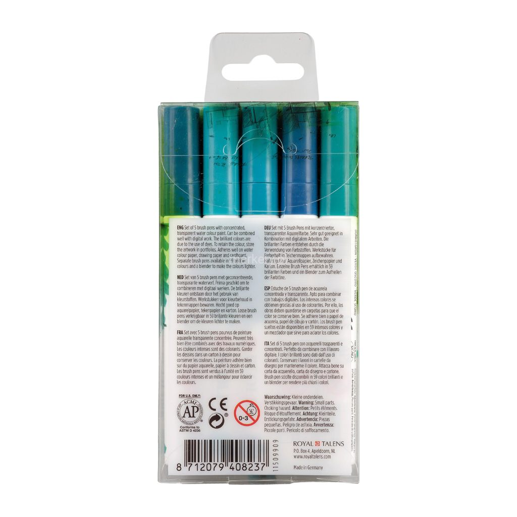 Ecoline Brush Pen zestaw 5 Green blue Tusze Zawiera: 5 Brush Pens (602-508-640-661-654)